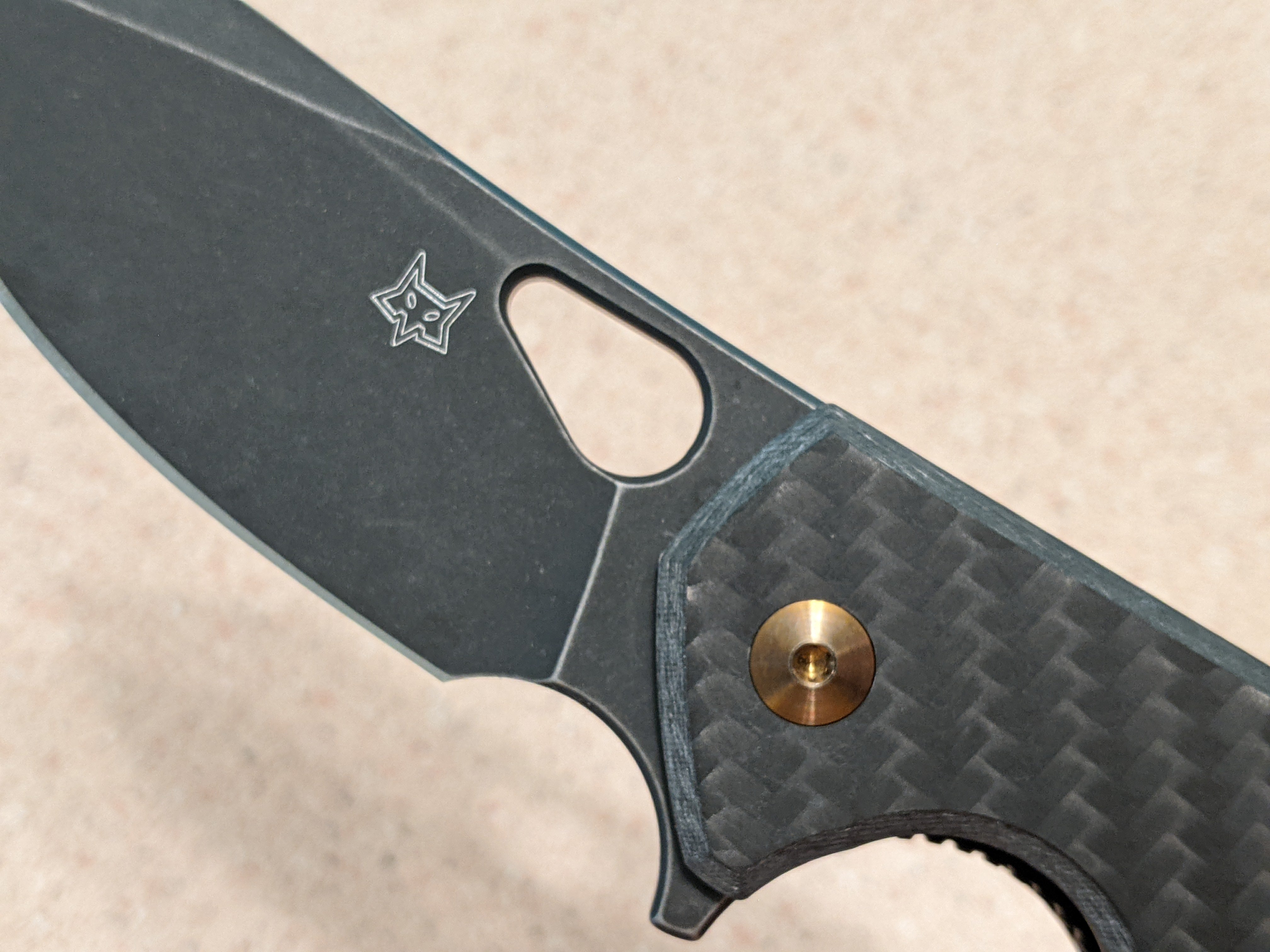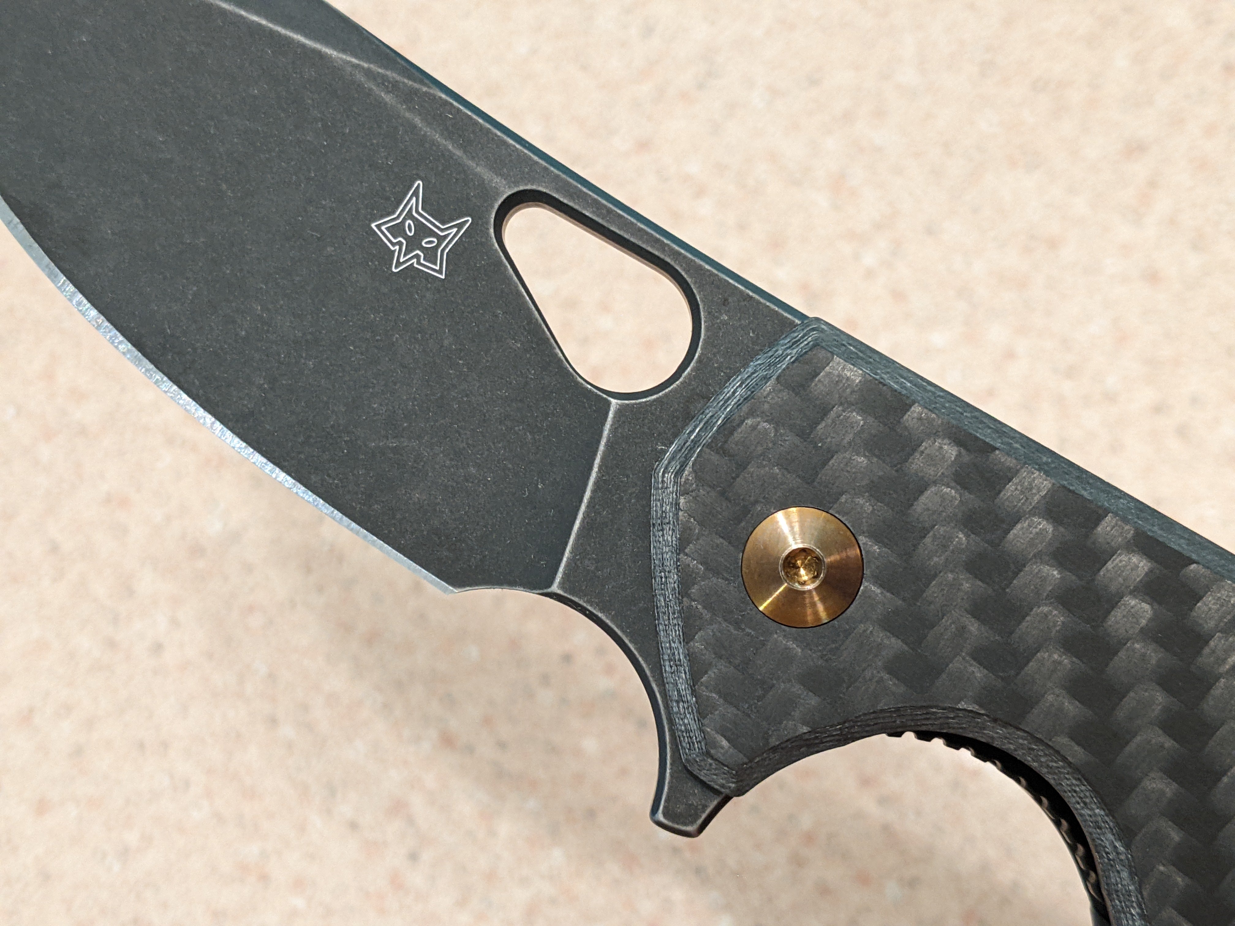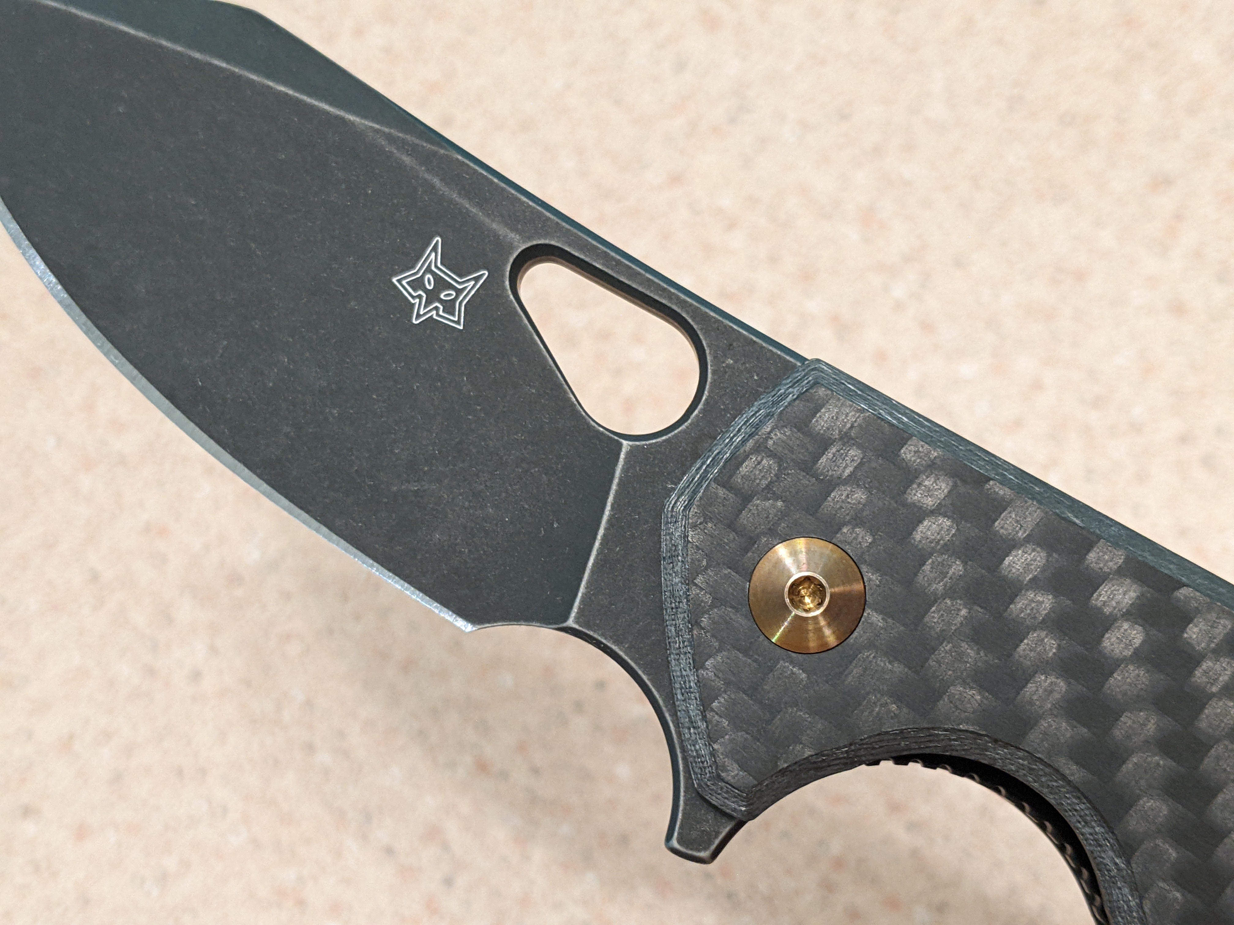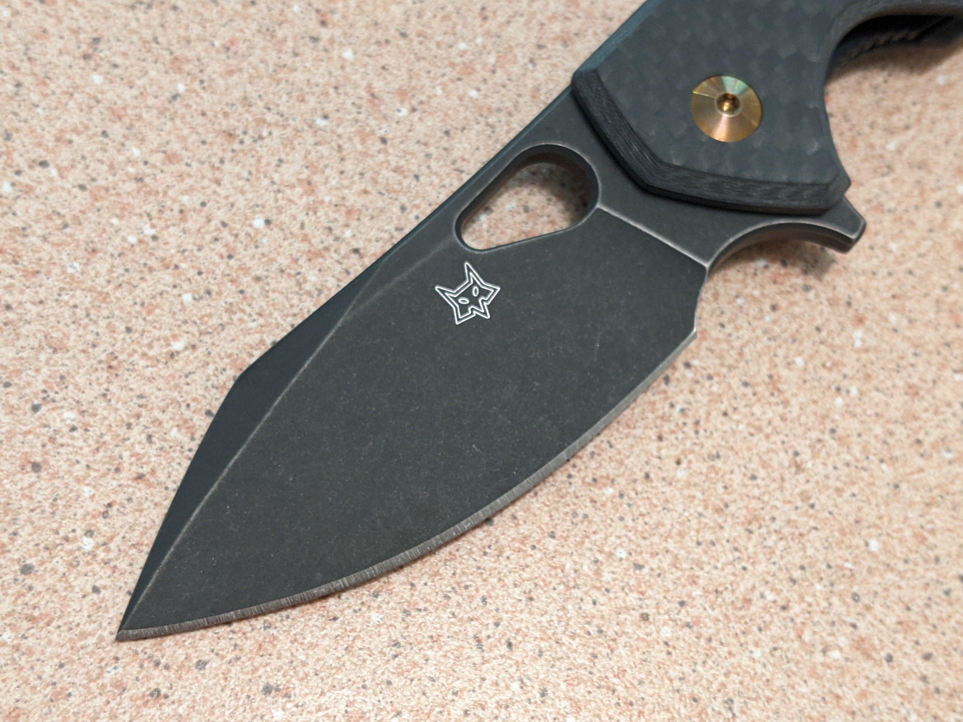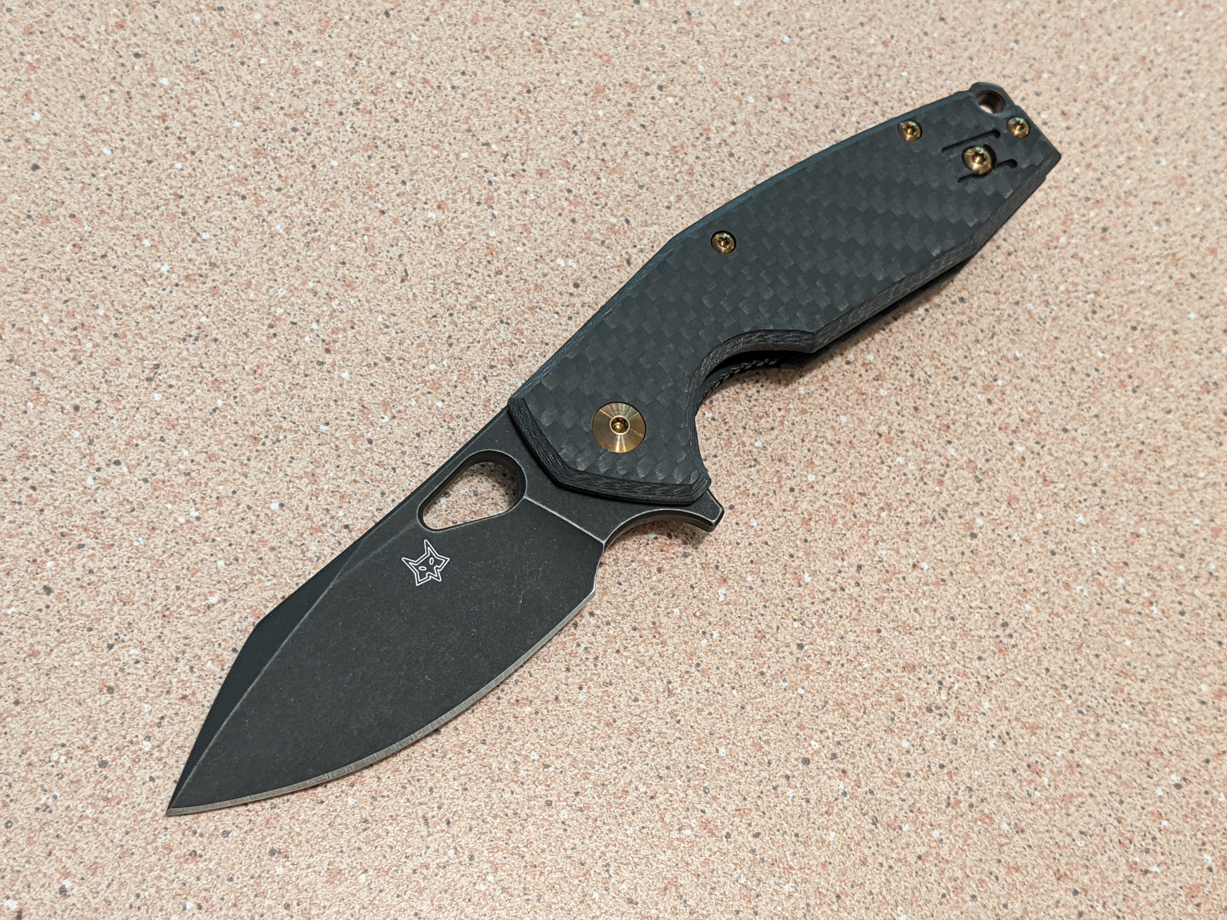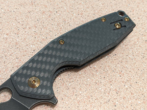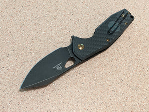 Fox Yaru Linerlock CF Knife, 3" Bohler M390 Blade, Carbon Fiber Handle, Black Stonewash Finish