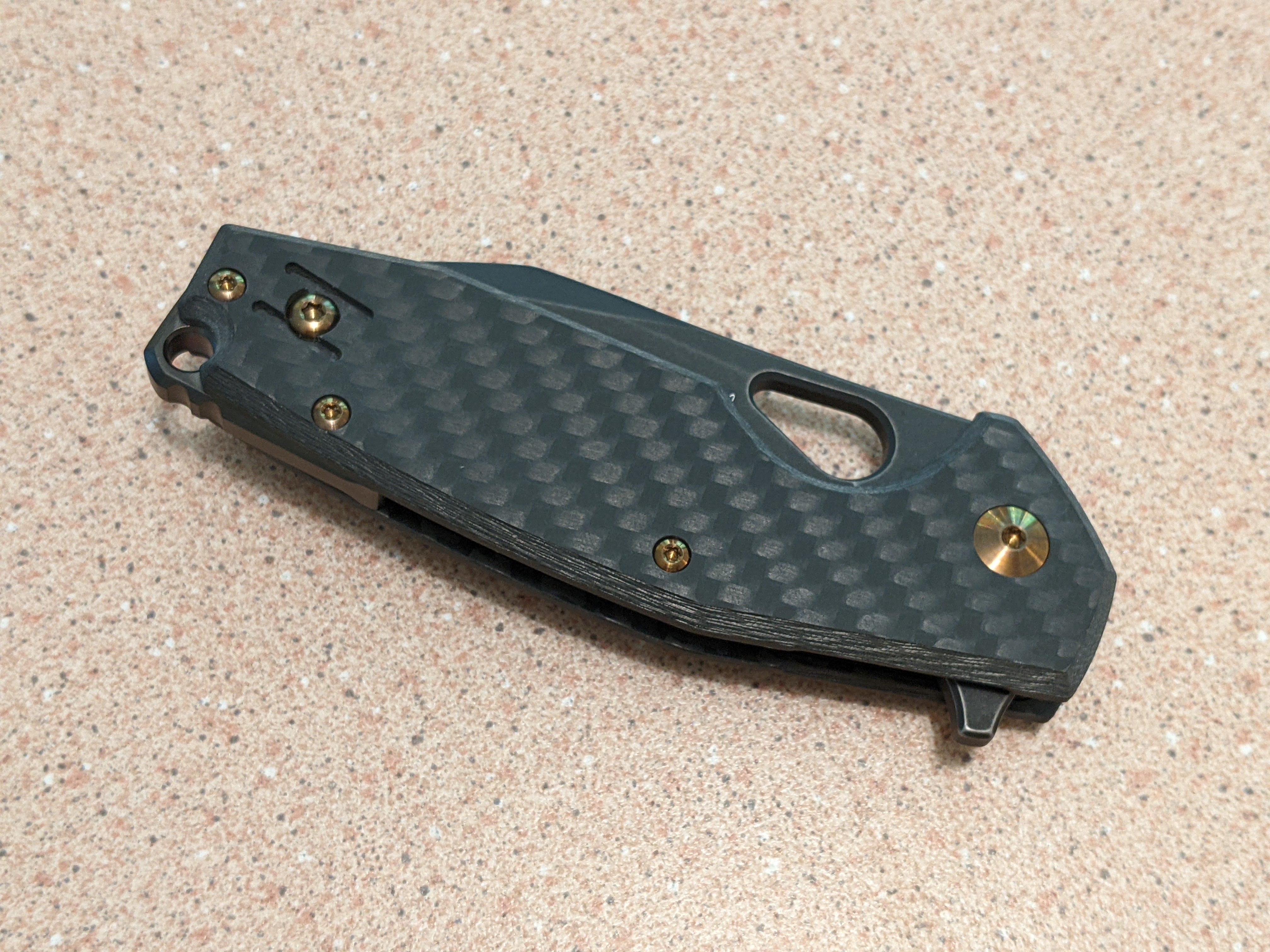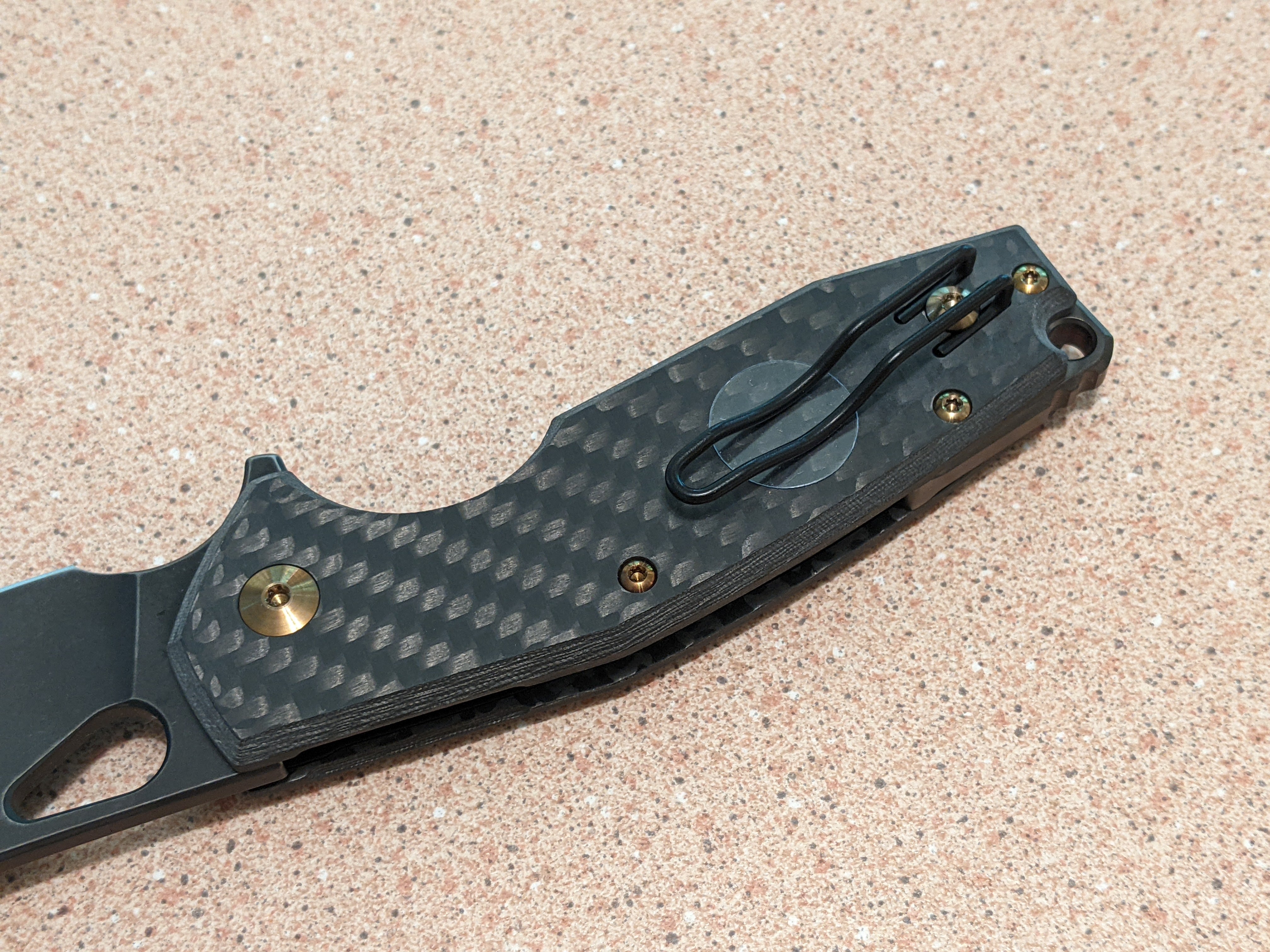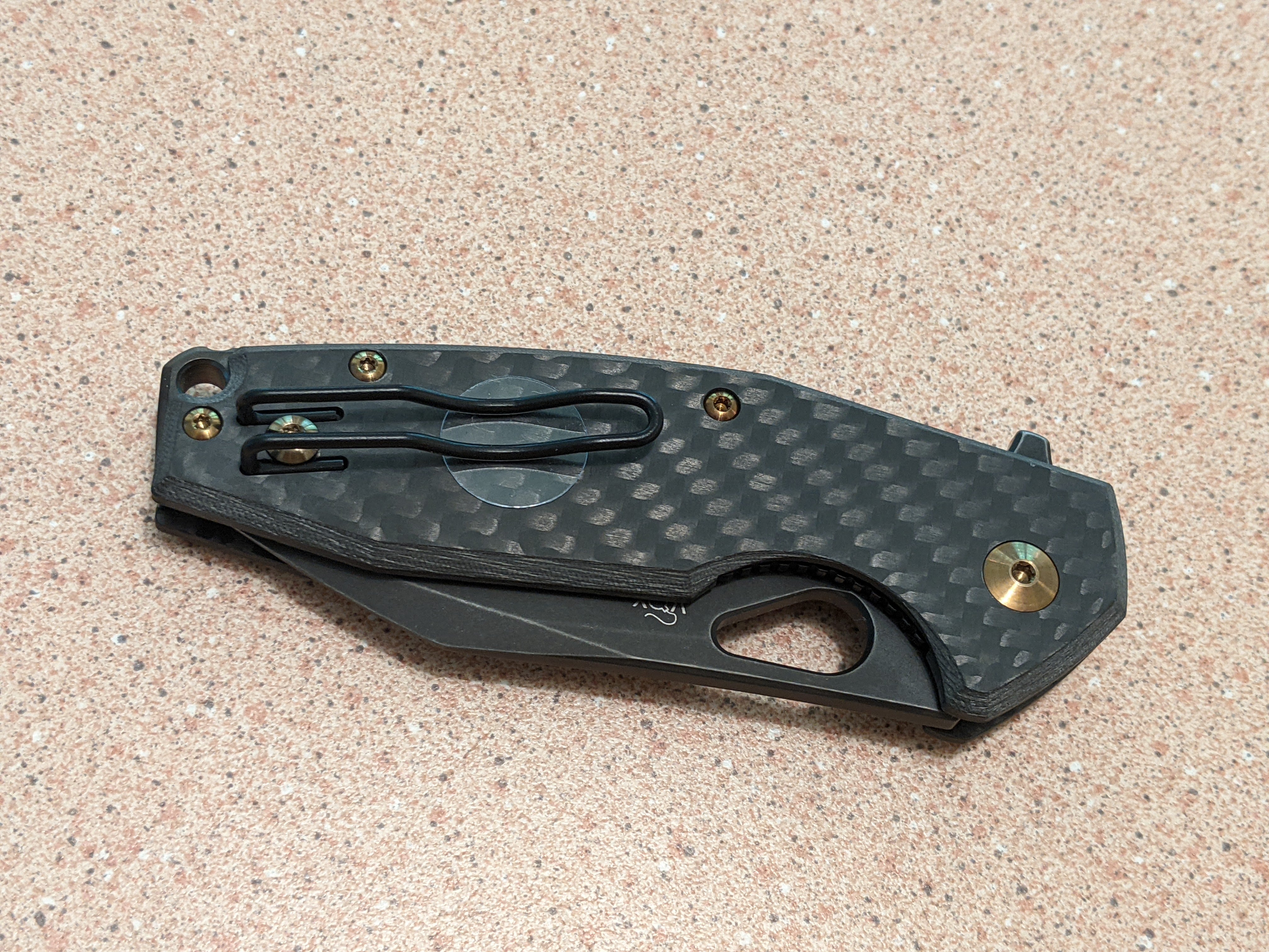 The carbon fiber handle provides a lightweight and comfortable grip, while the thumb pull and extended tang allow for easy one-handed opening. The lanyard hole adds versatility, and the pocket clip ensures convenient carry.