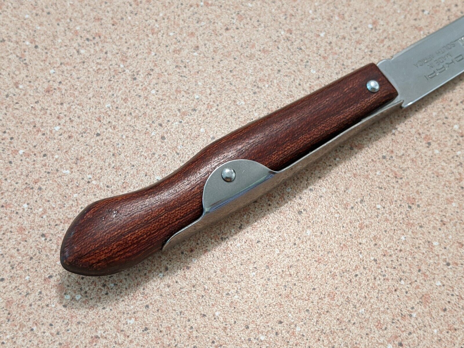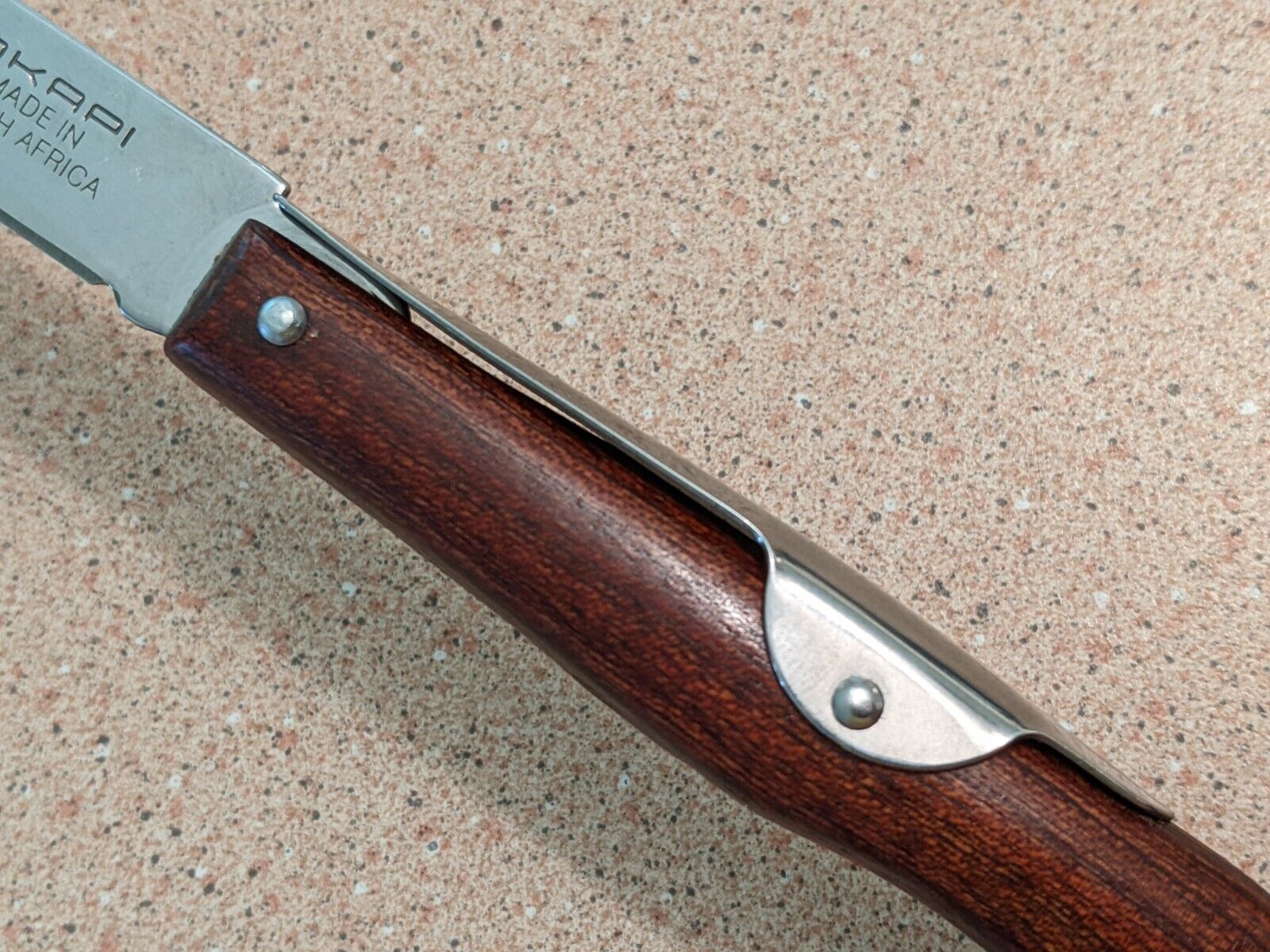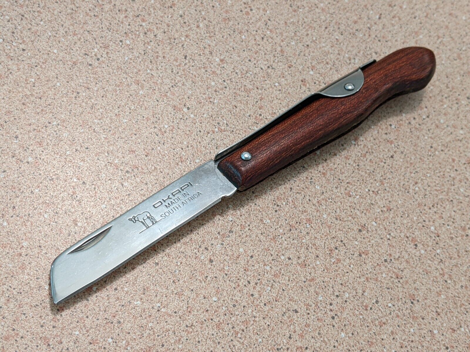 Okapi Knives - which is a registered trademark - have been manufacturing knives in Solingen, Germany, since the 1800's. In 1983, the manufacturing was moved to South Africa, and the knives are still made to the same specifications and standards of quality under German Management.